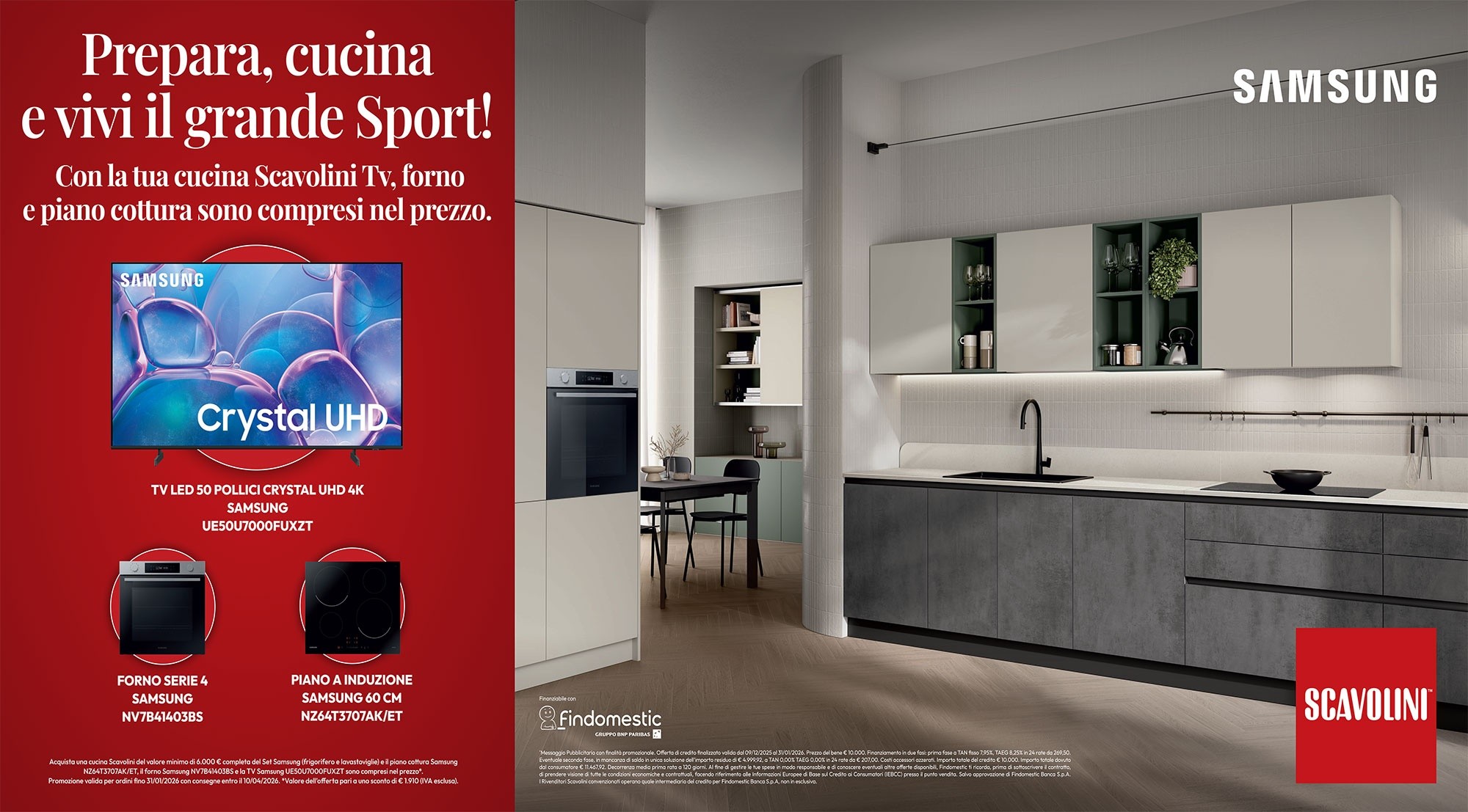 Acquista una cucina Scavolini del valore minimo di € 6.000,00, completa del set elettrodomestici Samsung (frigorifero e lavastoviglie tra quelli presenti in griglia consultabile c/o i rivenditori) e: