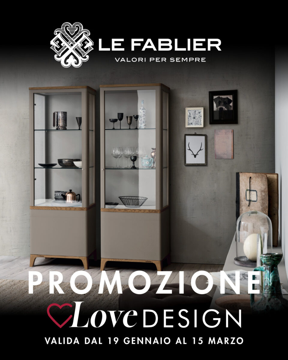 A partire dal 19 gennaio sarà attiva la PROMOZIONE LOVE DESIGN, un’iniziativa dedicata a chi desidera portare nella propria casa arredi capaci di unire design, equilibrio e attenzione autentica per i dettagli. Una selezione di proposte firmate Le Fablier, pensata per valorizzare ogni ambiente con armonia e carattere, mantenendo intatta l’identità raffinata del brand.